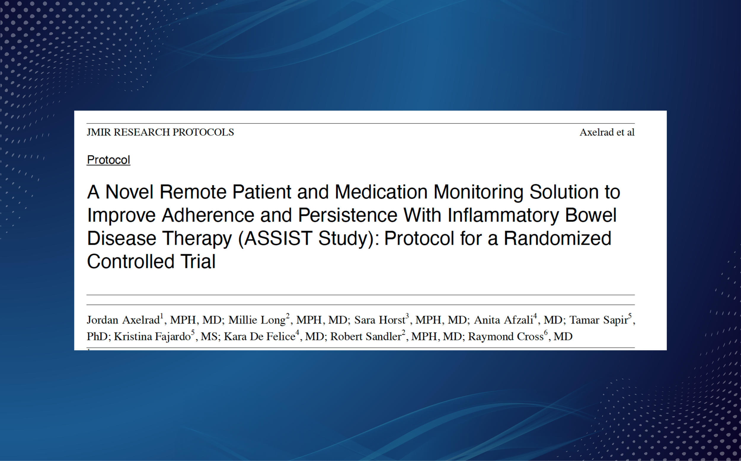 Most platforms claim results. Ours are peer-reviewed. From early feasibility and acceptability studies to real-world evidence and active clinical trials, our platform has been validated and recognized at every stage by leading academic medical centers and research institutions. Evidence by Disease Area Oncology Learn more Inflammatory Bowel Disease Learn more Infectious Disease Learn more Cardiovascular and Renal Care Learn more Remote Therapeutic Monitoring Learn more